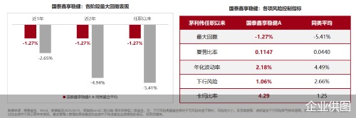 同时,茅利伟具有丰富的固收+产品管理经验,以代表产品国泰鑫享稳健A为例,Wind、国泰海通证券数据显示,截至2025年8月15日,该基金最近2年收益率11.15%,排名同类前25%,自基金经理茅利伟2023年7月5日开始管理以来收益率11.85%,还荣获国泰海通证券三年期五星评级。