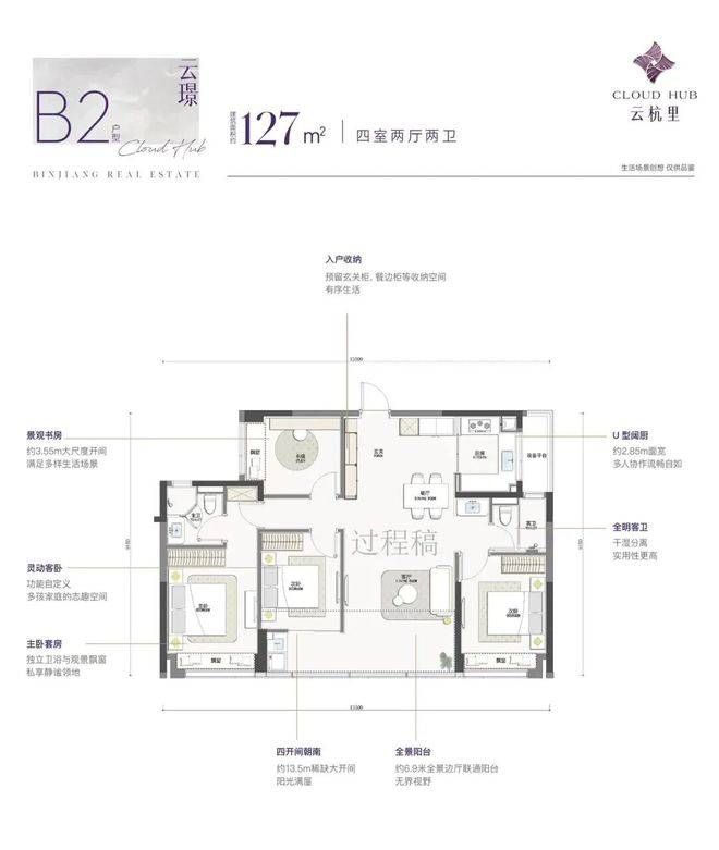 ✅滨江西站·云杭里营销中心热线(官方预约看房热线米四开间朝南,三个房间和客厅均朝南,阳光平权,约36.6m²餐客厅,极大的增强空间感与家庭互动性。双套房分设于东西两侧,彼此独立,日常起居互不打扰。